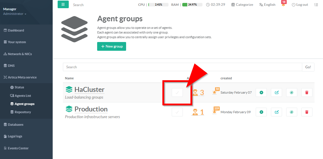 On the Agents List table, select the Agent you need to deny from updates.