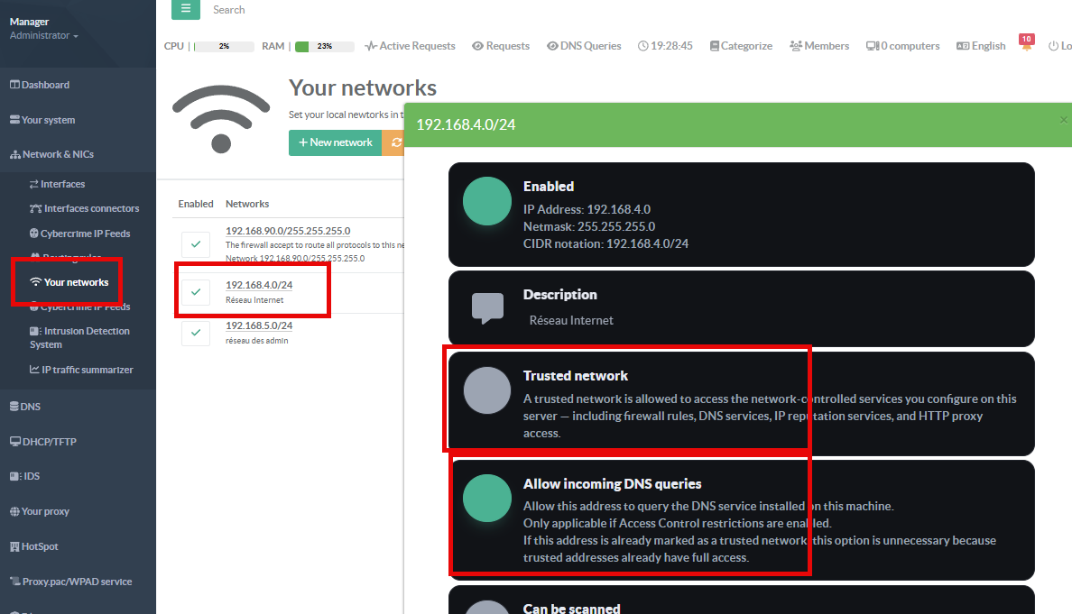 This feature restricts the DNS server to respond only to networks you’ve marked as “Trusted” in Artica’s Network section.