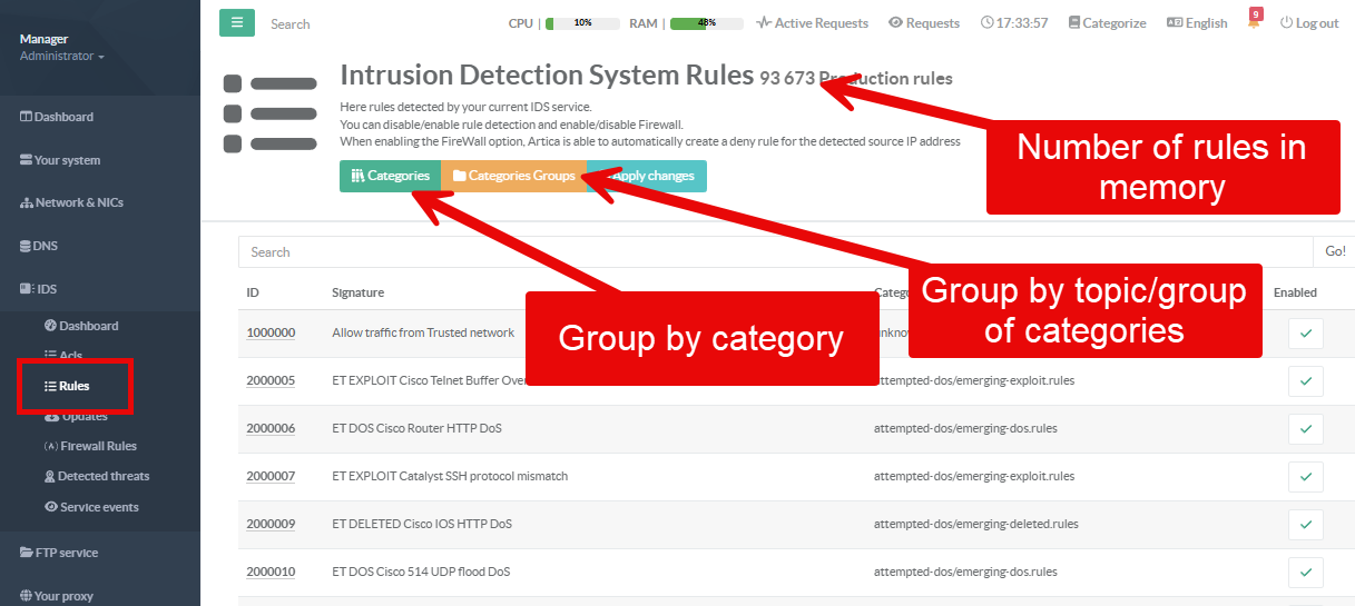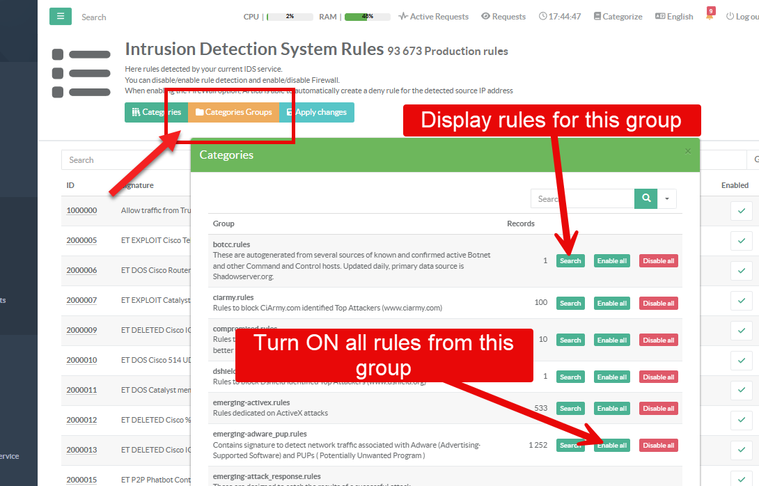 IDS > RulesThis section lets you view the full set of available detection rules.