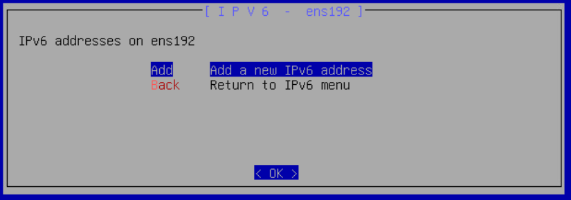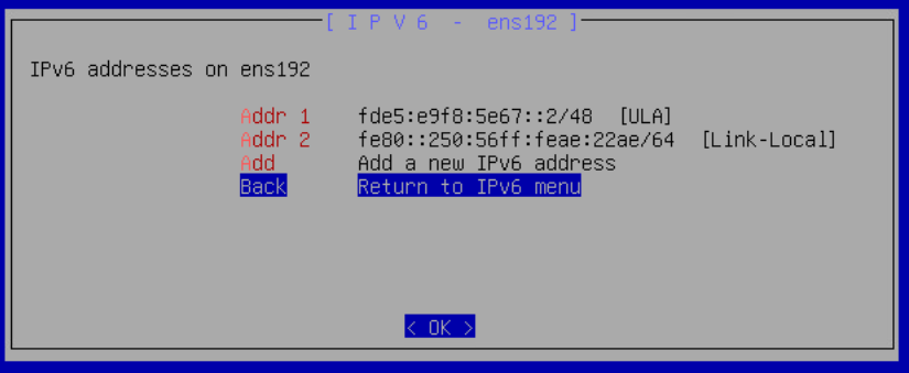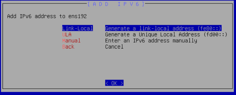 The address type (Link-Local, ULA, or Global) is automatically determined from the address prefix. All addresses are applied to the interface immediately after confirmation.