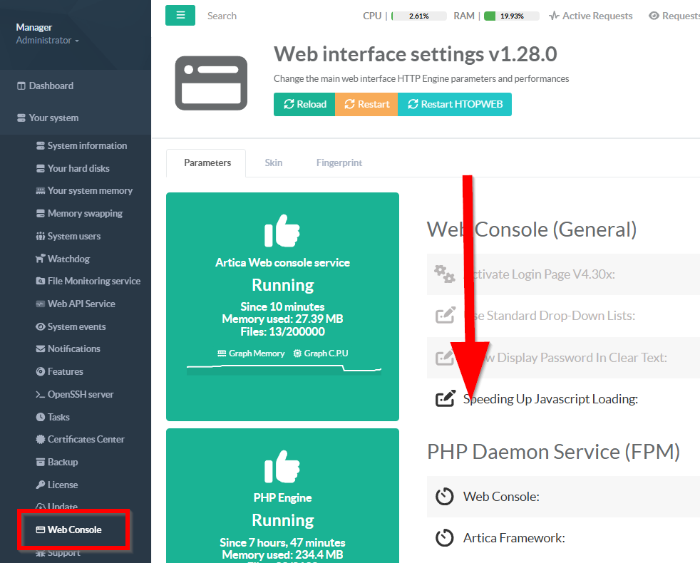 The Web Console has its own IP stack, routing table, and firewall rules — completely separated from the host's production traffic.This feature is available on Artica v4.50 Service Pack 7 or Artica v4.50 Service Pack 6 Hotfix 20260315-01