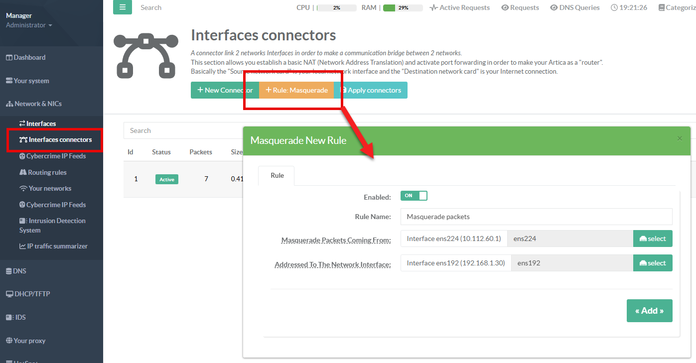 There’s no need to force IP routing because the Proxy and the DNS server already “bridge” traffic at Layer 7 between the two interfaces.
