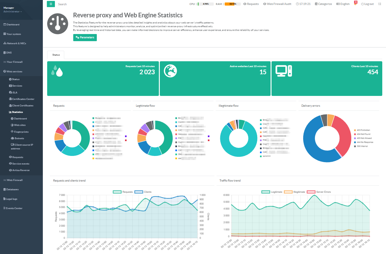 Every HTTP request passing through your reverse proxy is classified, counted, and visualized in real time. You see exactly what your infrastructure is doing, right now, and how it has behaved over time.