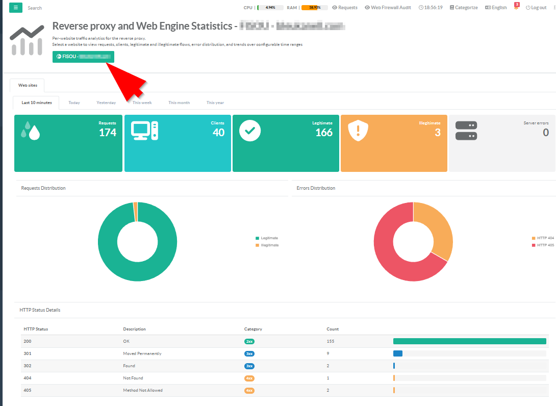 Illegitimate Flow Per-site breakdown of blocked, rejected, or malicious requests (4xx client errors, 444 silent drops, 429 rate-limits). Identify which sites are under attack or misconfigured.